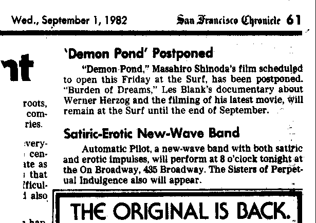 Opening for us that evening were the Sisters of Perpetual Indulgence